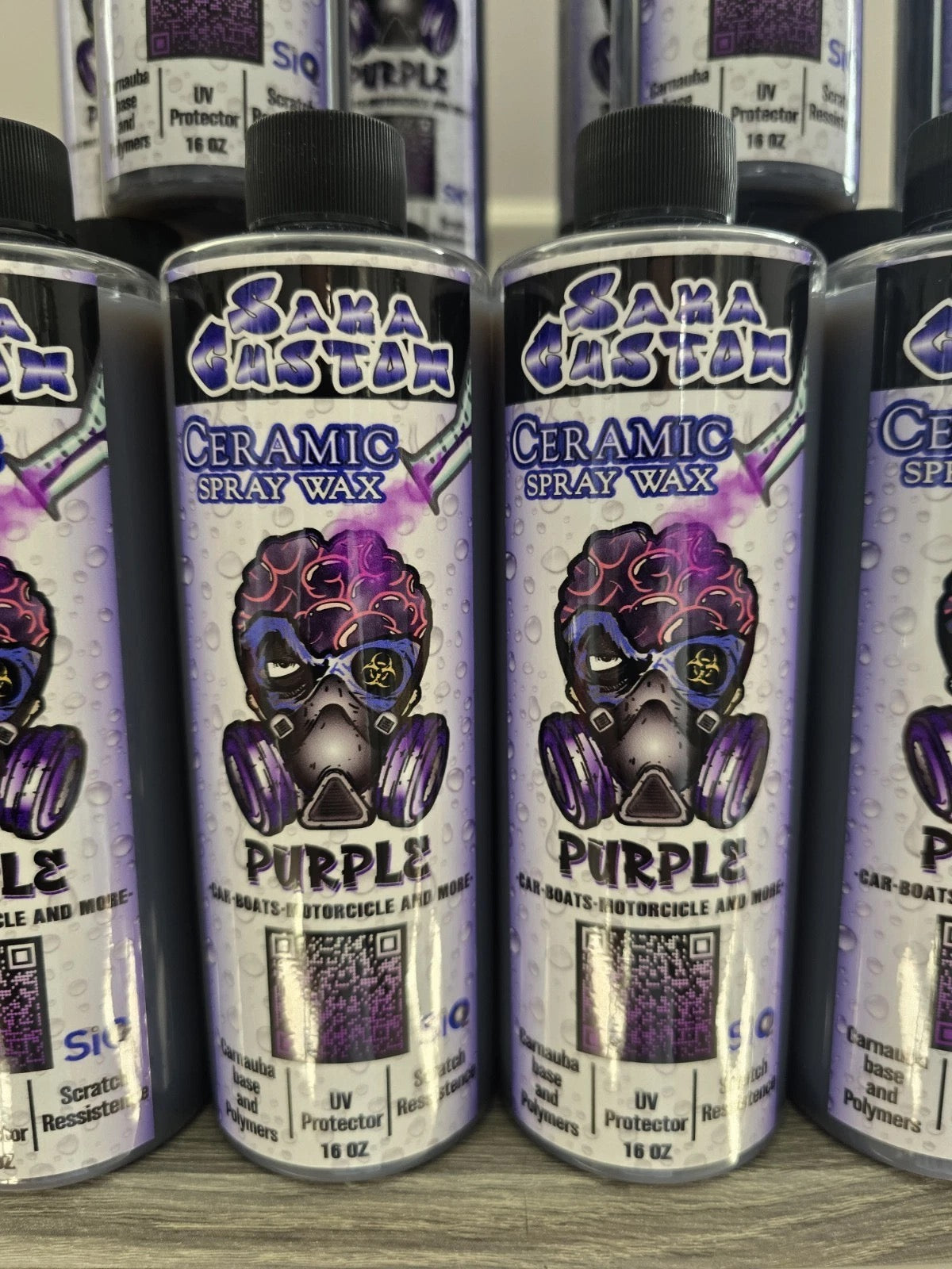 Unleash the power of our Ceramic Spray Wax, the ultimate solution for keeping your vehicles looking pristine! This versatile spray is suitable for cars, motorcycles, boats, and more. Featuring a stunning purple hue, it combines the brilliance of synthetic polymers and SiO2 with the rich depth of Carnauba wax for unmatched gloss and smoothness.